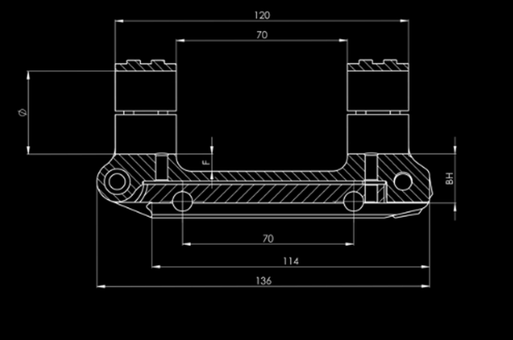 - Klemmung: Halbschalen horizontal mit Torx-Zylinderschrauben