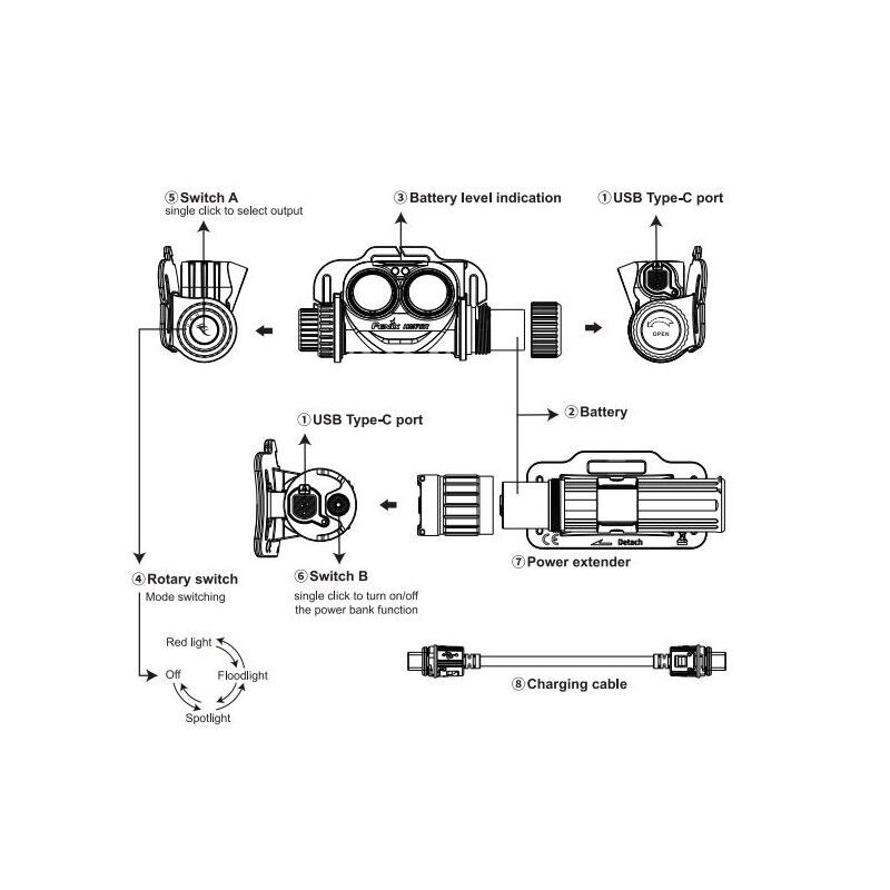 - Modulares Design: Stirnlampe mit abnehmbarem Zusatzlicht